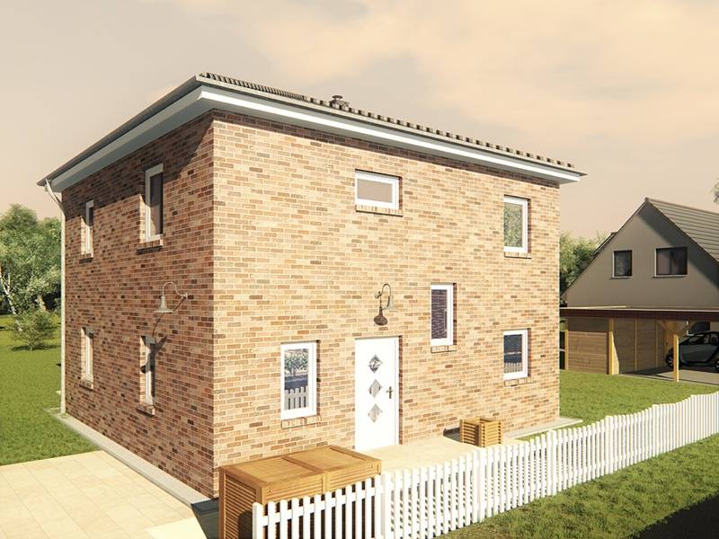 Der Grundriss mit 9 x 9 Metern schafft überraschend viel Raum. Im Erdgeschoss spielt sich das Familienleben ab: eine helle Küche, ein großzügiger Wohn- und Essbereich sowie ein Gäste-WC sorgen für ein offenes und kommunikatives Wohngefühl. Im Obergeschoss befinden sich drei Schlafzimmer, ein modernes Bad und ein praktischer Abstellraum.